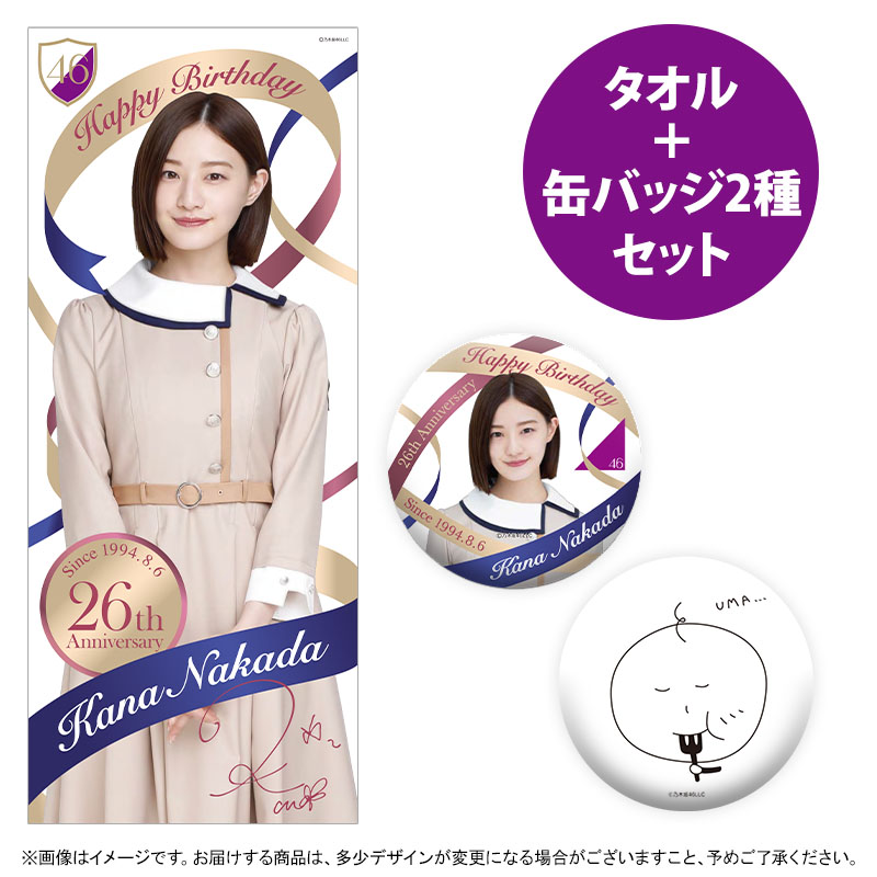 【8月下旬より配送】2020年8月度 生誕記念フェイスタオル&缶バッジセット/中田花奈